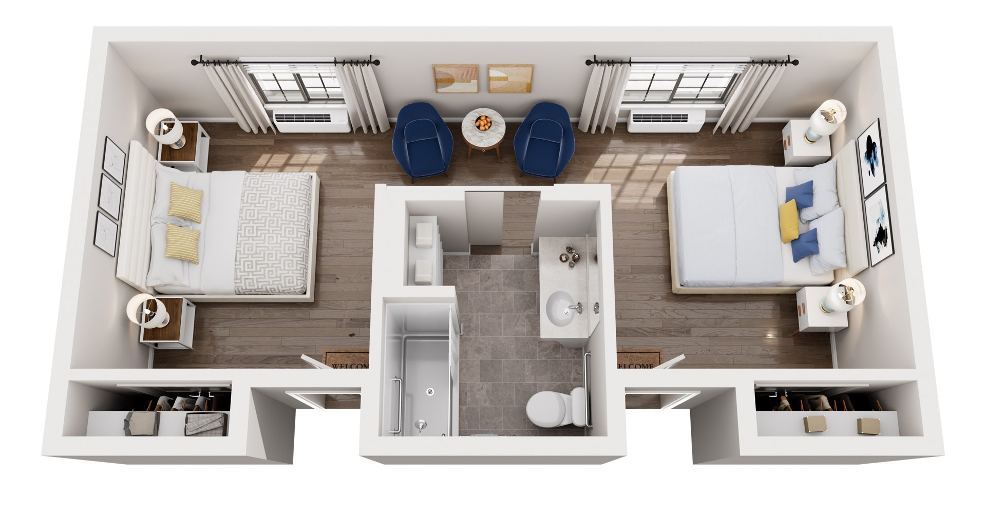 All memory care floor plans include: