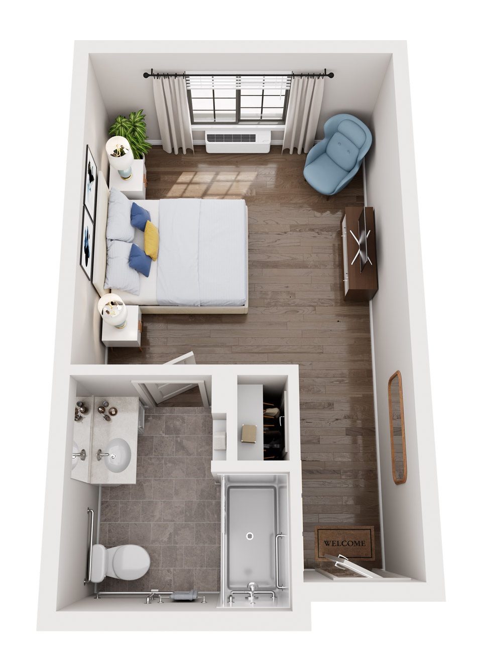 Our studio apartments are ideal for residents who prefer a quiet, private space with easy access to community amenities. These studios offer a sense of independence while ensuring comfort, safety and support.